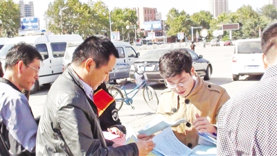 建设局爱卫办工作人员向村民发放农村无害化改厕宣传材料