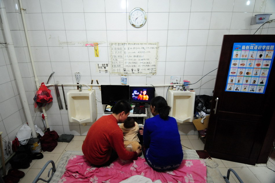 【沈阳修鞋匠三口之家在厕所蜗居生活】曾令军一家在\"厕所小家\"内生活(3月18日摄).
