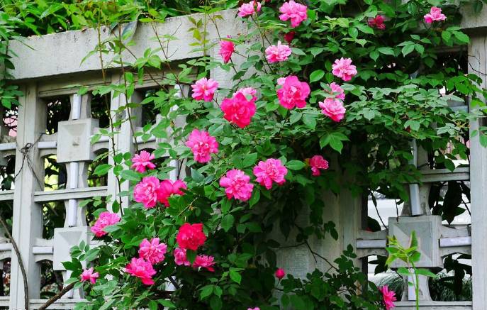此外,蔷薇有刺_ 户撒农户很多在田地周围_ 种上蔷薇当作篱笆_ 所以沿着环乡路_ 不经意间_ 你就会就走到了蔷薇深处_ 在陇川户撒_ 几乎每村每寨都有蔷薇花_ 佛祖的花园_ 所以户撒人喜欢种花_ 顾盼生姿,妩媚可爱的蔷薇花_ 被户撒人