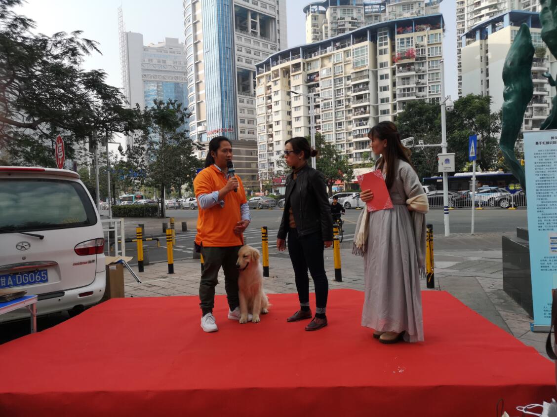 深圳中心书城广场化作一片爱的海洋,爱心市民纷纷排队领养狗狗,\"最美养犬人\"为深圳文明养犬代言,数百市民现场签署《文明养犬公约》,三大养犬科普讲座教