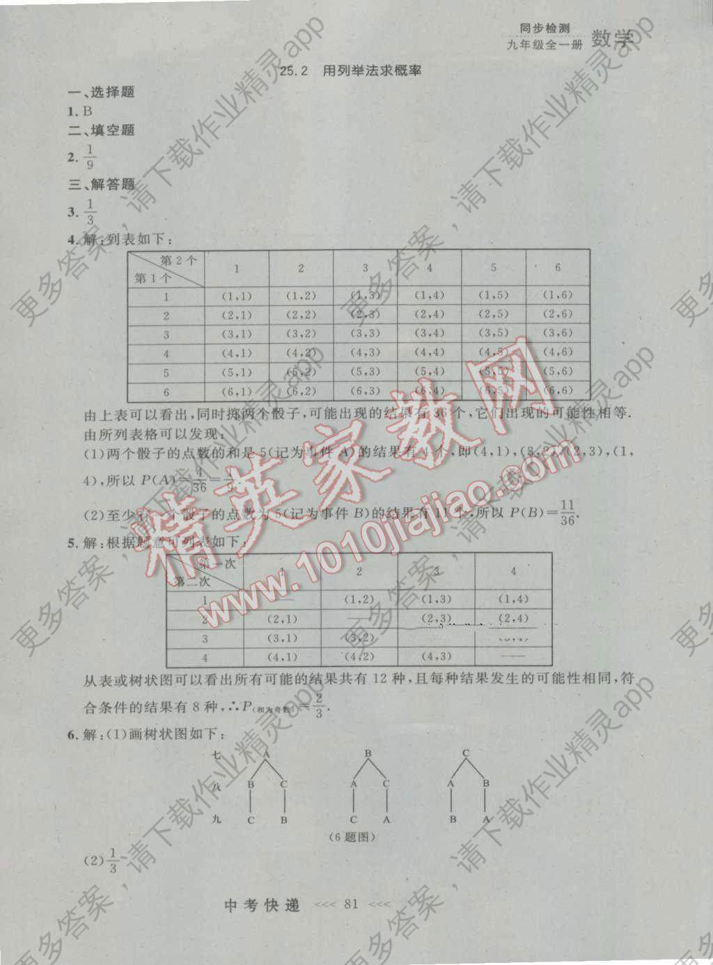 2016年中考快递同步检测九年级数学全一册人教版大连版答案