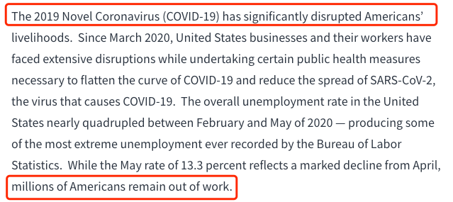 公告中多次提及美国人失业率之高、失业人数之多
