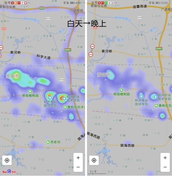 6. 高新区热力主要集中在郑大、工大一圈,其他热力点主要在写字楼、商场、科技园等。