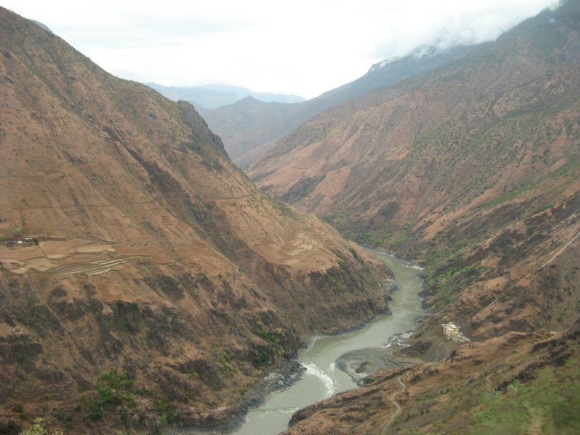 跨过金沙江 来到宁蒗县城,看到有摩梭人了 从宁蒗县去泸沽湖,沿途的山要小些了,村庄修建的大多是木楞房 泸沽湖景区大门,大门周边的村庄和村民,这里离泸沽湖还很远 终于来到泸沽湖,先在半山的观景台拍照,天气不好,但能看到湖中的小岛和远处的神山