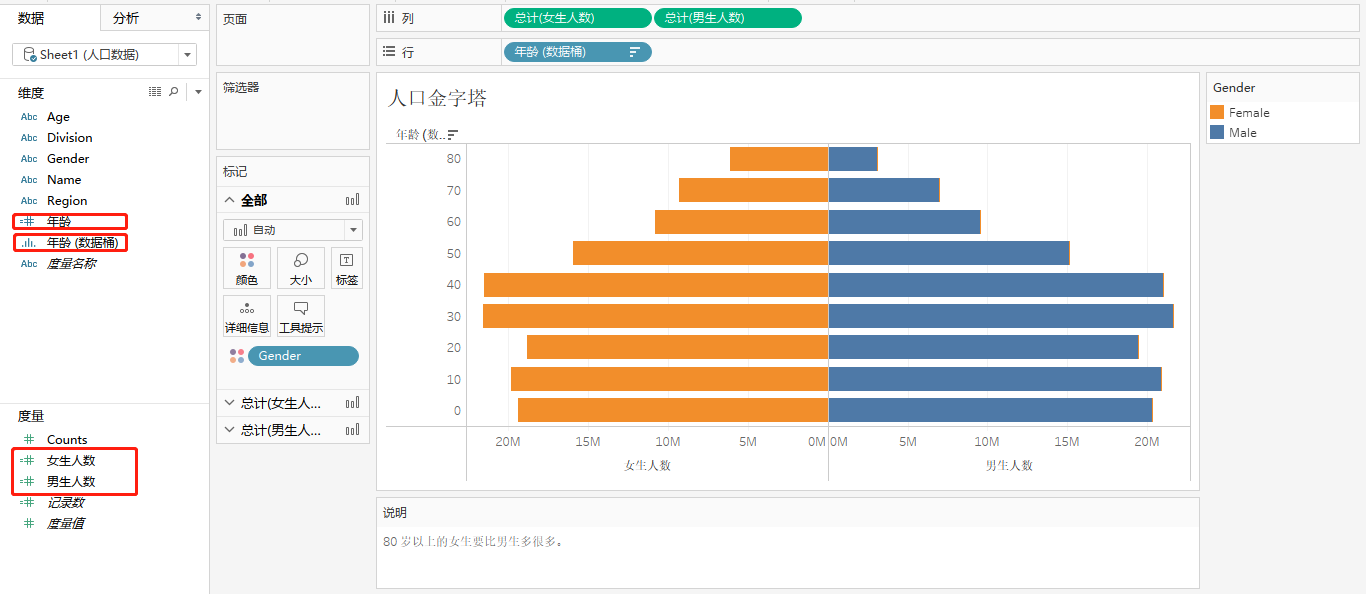 手把手教你 Tableau 绘制人工金字塔图 二十