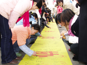 13亿人口日\"市计生委举行百米长卷万人签字活动