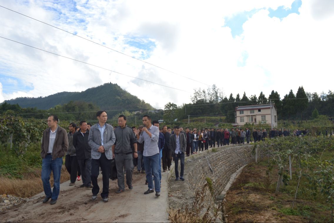 图为与会人员参观云峰镇韩家坪村已建成猕猴桃产业园