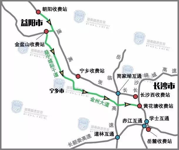 绕行线路二:益阳银城大道转金洲大道_ . 从益阳南线绕城高速金盆山收费站下高速,转益阳银城大道往东行驶进入长沙金洲大道,继续往东行