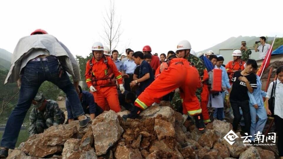 鲁甸地震救援人员和消防官兵徒手抢通生命线