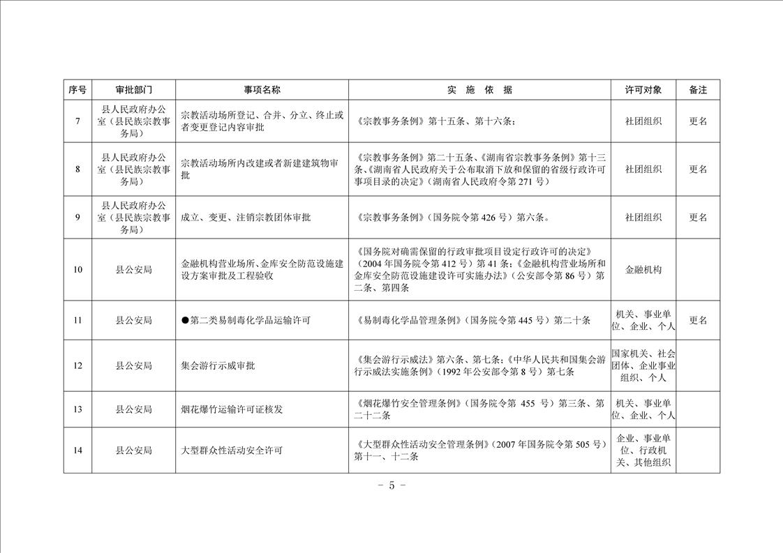 临武县门户网站 临武县人民政府 关于公布县级行政许可事项目录 2017年 的通知